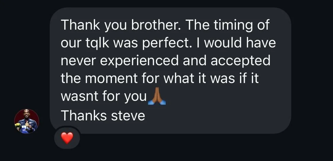 When I suggested to Christian that he simply accept the praise at his final meet, it wasn’t just about being polite—it was about letting himself feel the weight of what he’d accomplished and giving the gift to others to fully celebrate and take inspiration from him. It was about giving himself permission to be proud. And you know what? It made a difference. In a note he sent me afterward, he expressed how much that simple act of saying “thank you” meant to him. It wasn’t just words; it was a moment of genuine connection with everything he’d worked so hard to achieve.